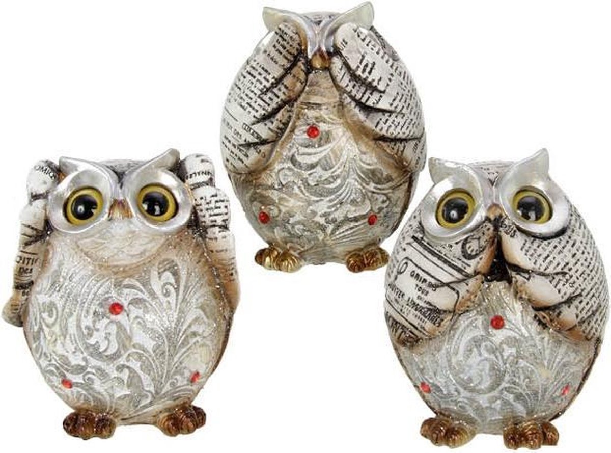 Zilveren en créme kleurige uilen horen zien en zwijgen van €24,95 nu voor maar €15,-